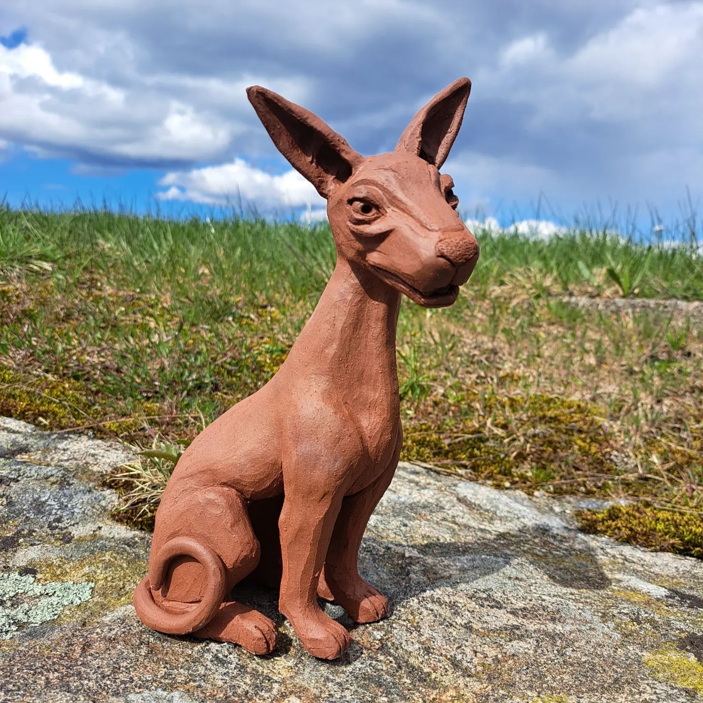 En trogen och lojal försvarare. När jag skapade den här skulpturen ville jag göra en figur med ett intressant utseende som kunde vaka över hemmet den står i. Med en slät och smidig kropp som kompletterar det uttrycksfulla ansiktet är jag som skapare mycket nöjd med hur den fick liv i mina händer.